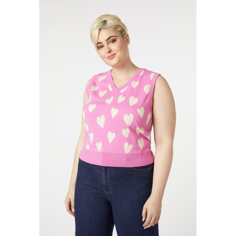 Love heart printed vest- fall in love with our sweet hand painted love heart styles- semi fitted style- generous stretch- v neckline shaping- rib knitted armhole, v neck and hem- made of a soft cotton yarn- available in pinkProduct Code: PGFW138
