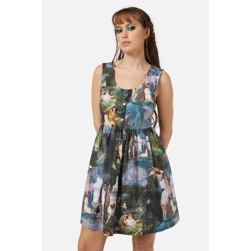 Graphic Dress- Round Neckline- Sleeveless Style- Pockets At Sides- Fit-And-Flare Shape- Gathered At Waistband- Zip Closure At Back- Made From Cotton- Available In MultiProduct Code: BGFY199