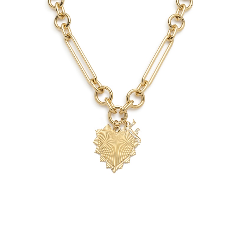DescriptionHandcrafted in 18-karat gold, this 18" Oversized Mixed Clip Chain has 3 center annex links that allow for maximum flexibility. Sold witha plainOversized HeartLove Token and Diamond Initial, this piece was created as a reminder to love fiercely a