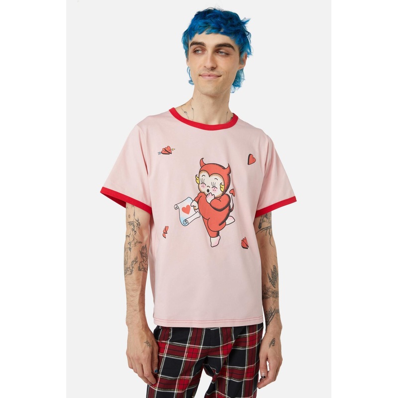Graphic Tee -Features ‘Love Letter’ Placement Artwork -Short Sleeves – Red Contrast Collar And Cuffs -Round Neckline -Made From Cotton Elastane Jersey -Available In Pink