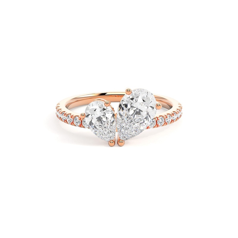 TheLove Toi et Moi Ring from Sacetis made from a choice of recycled18K white gold, 18K yellow gold, 18K rose gold, or platinum.Two pear-shaped lab-grown white diamonds of different sizes come together at the centre of this toi et moi engagement ring, creat