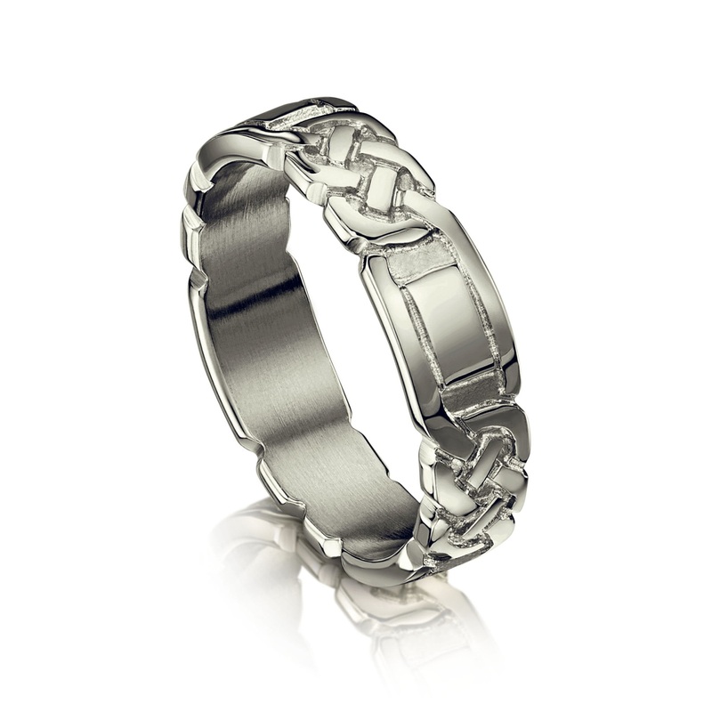 This Lovers Knot Ring in platinum features multiple double knot designs spaced across the ring.This collection was inspired by the traditional lovers knot, a knot which is not readily undone, dating back many centuries to the art of the Celts. Two interloc