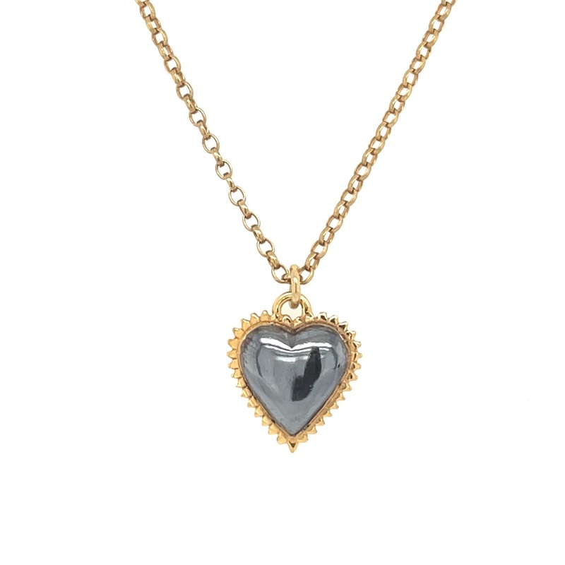 Ana Verdun London's Lulu Heart Pendant - Black and Gold is handmade in England fromethically sourced oxidised sterling silver and 22ct yellow gold vermeil.The Lulu Heart pendant comes on a fine gold plated Belcher chain, and has been designed so it can be
