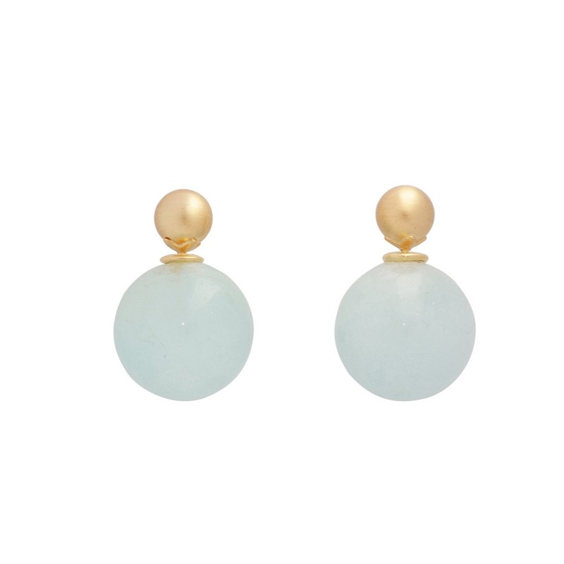 TheLUNA Duo Earringsare made from 18k yellow gold plated sterling silver.These round drop earrings made with aquamarine are like a full moon in the sky. Wear them and feel calm and relaxed as you elegantly flow through your day and into the night.Part of N