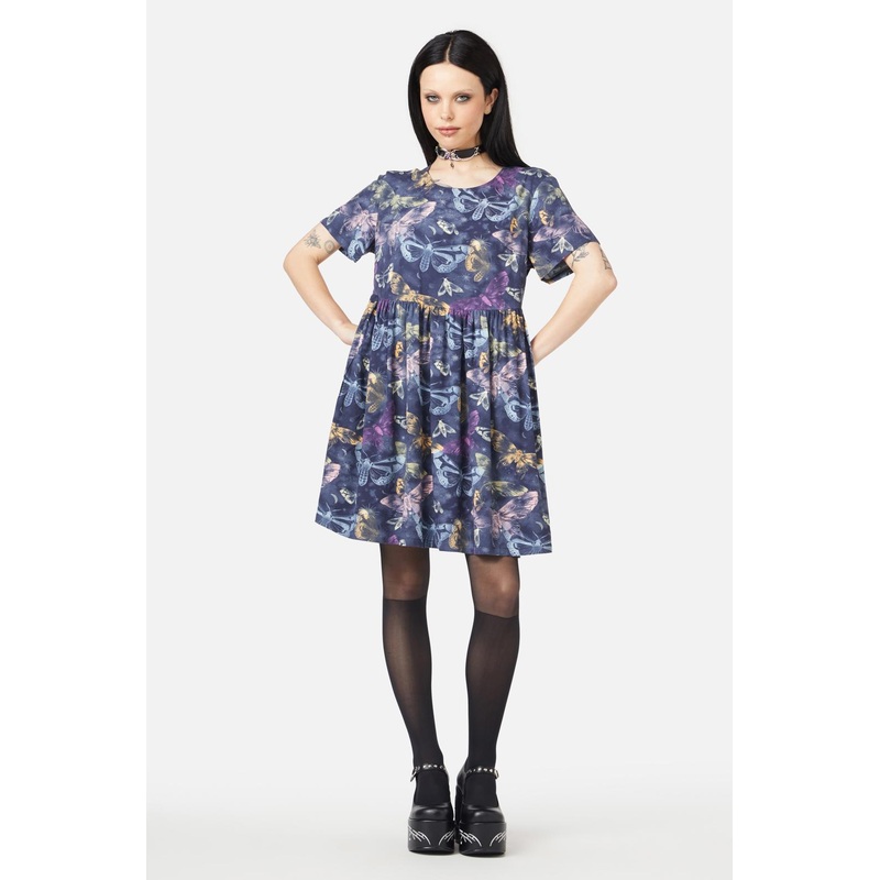 Graphic Dress- Round Neckline- Short Sleeves- Relaxed Fit- Gathered Skirt- Pockets At Sides- Zip Closure At Back- Made From Soft Viscose- Available In NavyProduct Code: BGFY289