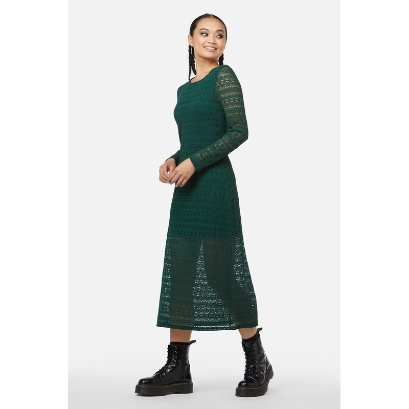 Fitted Lace Dress- Constructed Of Stretch Lace- Includes Lining- Rounded Neckline- Long Sleeves- Outer: 90% Nylon, 10% Elastane;Lining: 62% Polyester, 33% Viscose, 5% elastane- Made From Stretch Lace- Available In Black & GreenProduct Code: BGFX143