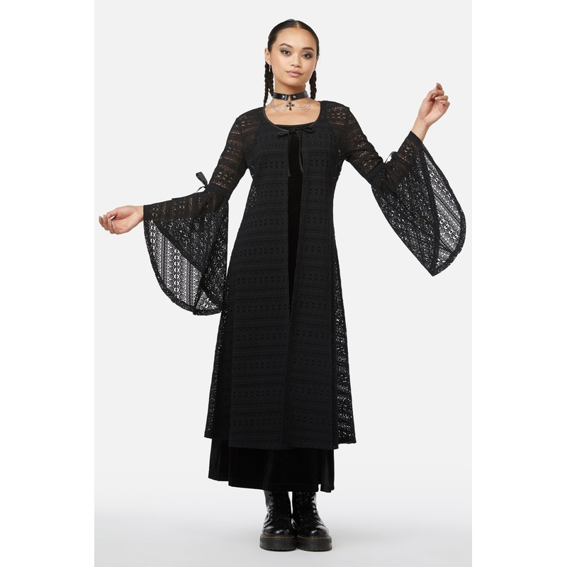 Lace Long Jacket -Features Flared Sleeve Detail -Full Body Length Jacket Style -Ties At Centre Front -Made From Polyester -Available In Black