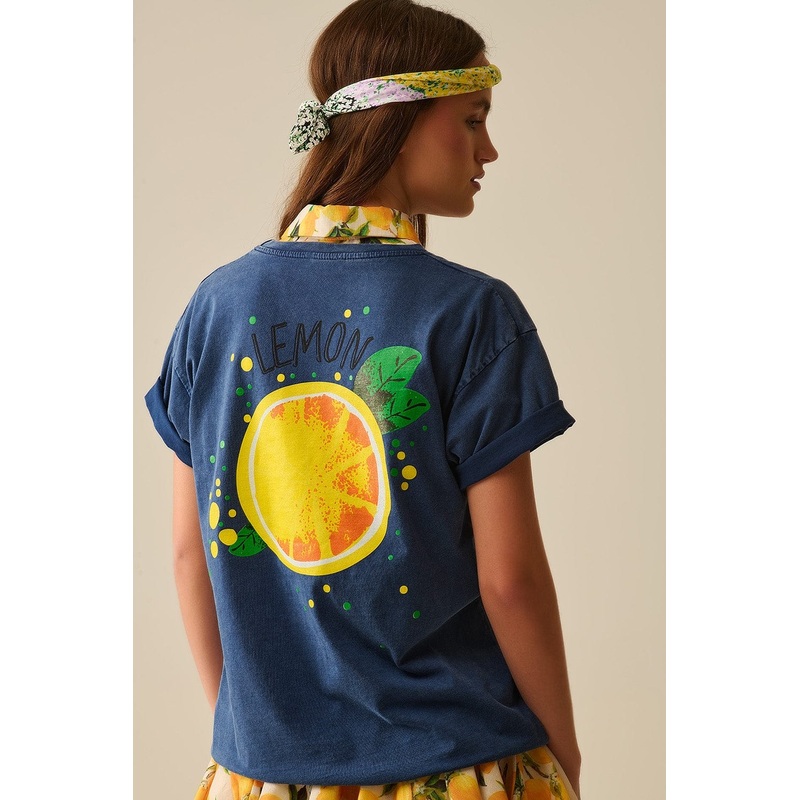 Playful and effortlessly cool, this navy T-shirt adds a refreshing twist to your casual wardrobe with its bold lemon graphic on the front and a striking oversized print on the back. Made in Italy from high-quality cotton, it delivers both standout design a