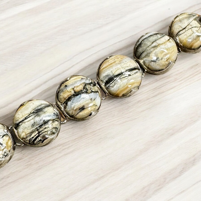 Mammoth Tooth is found in Alaska's permafrost..925 Sterling Silver frame. 9 cabs Length - 6" Width - 1/2" inchMammoth Tooth Card Included