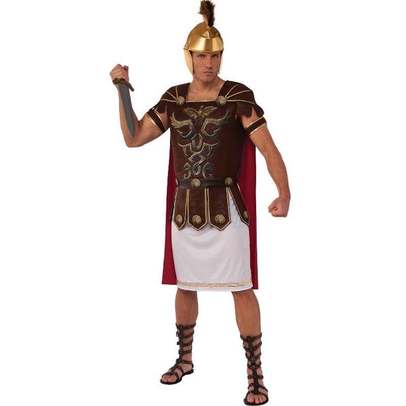 Item Includes:Tunic with attached armor and cape.Helmet.Sizing:See size chart image for details.Materials:100% Polyester.Hand wash, hang dry.Please note: Shoes and knife prop not included. Powerful leader.Transform yourself into the famous Roman Politician