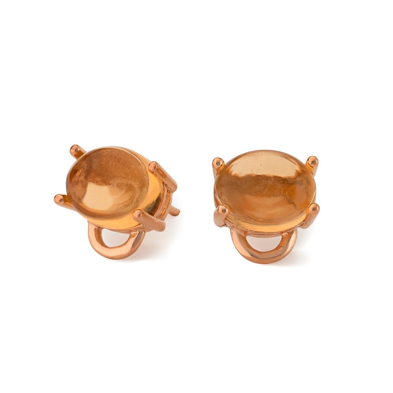 This elegant pair of Marmaris Earrings set in 100% recycled 18k Rose Gold Vermeil are created with 10 x 12mm cabochon lab grown gemstones. Pictured here in Champagne quartz, these striking earrings are also available in a variety of different lab grown sto