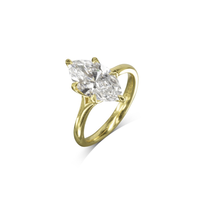 The Marquise Diamond Tulip Claw Engagement Ring blends classic elegance with a modern twist.Handmade in 18ct Yellow Gold: The ring is handmade in 18ct yellow gold or platinum, known for its durability and luxurious appearance.Marquise Diamond: The central
