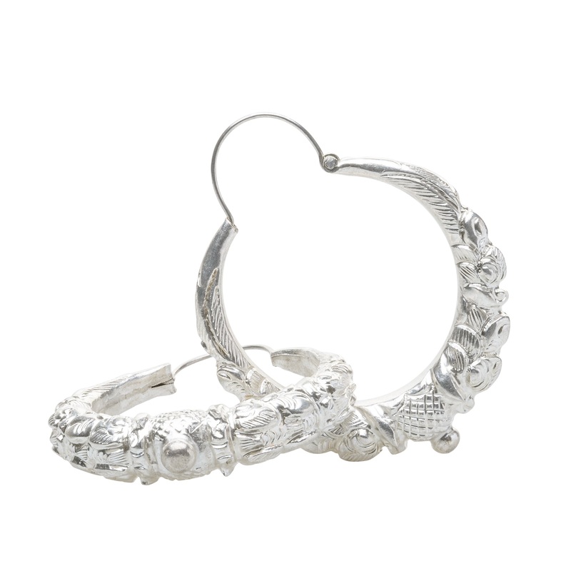 The Marwari Earrings, are inspired by a classic Nepali design made popular by the local Sherpa and Rai women in the Eastern area of Nepal. The Marwari design incorporates symbolic animal heads which are designed to protect the wearer, also patterns of foli