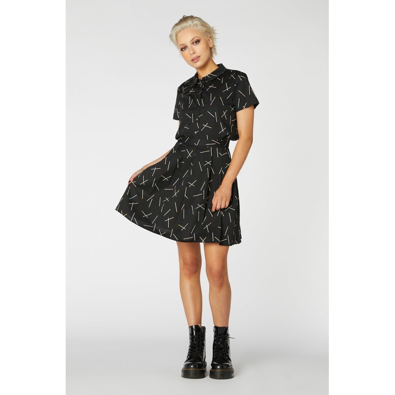 Printed flared skirt - Above knee length skirt - Center back closure- Matches print - Inseam pockets - Available in Black Product Code: RGFS009109