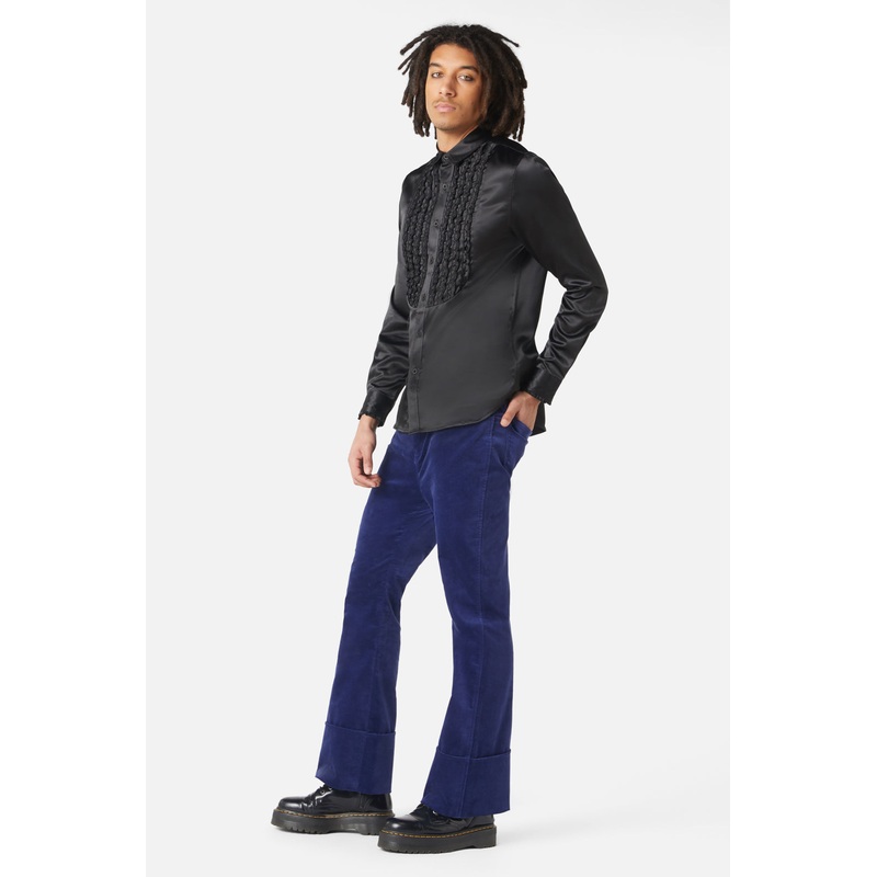 Silky Shirt- Tuxedo Shirt Style- Long Sleeves- Collar At Neckline- Covered Button Placket- Cuff With Button On Sleeves- Frilly Bib On Front Chest- Made From Polyester- Available In Cream & BlackProduct Code: DBFW047