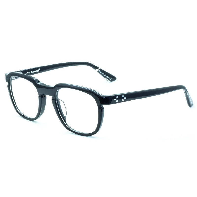 McLaren Eyewear Full Rim Frames 100% Authentic - MLDS-89O04 C01 Gloss black on transparent acetate frames and arms Brand new - Never been worn Lens Width = 48mm Frame Height = 45mm Bridge = 21mm Temple (Arm Length) = 140mm Measures 138mm across the front,