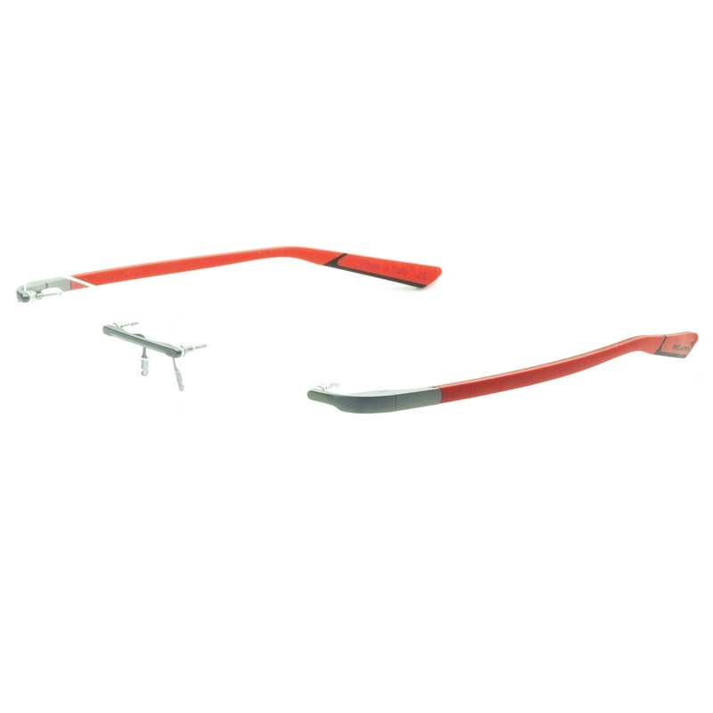 McLaren Eyewear Rimless Frames 100% Authentic - MLMS-85O01 C05 Satin grey metal frames Matte red rubber arms with black inlays Brand new - Never been worn Lens Width = 53mm Lens Height = 34mm Bridge = 17mm Temple (Arm Length) = 145mm Measures 138mm across