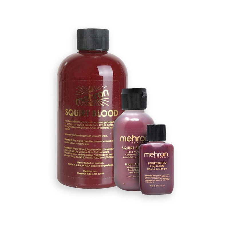 Bright RedLook gruesome this Halloween with this Mehron Arterial Bright Red Squirt Blood. This quality performance Squirt Blood is water based, not sticky syrup, and is available in venous and arterial colours to be used in tubing or appliances for special