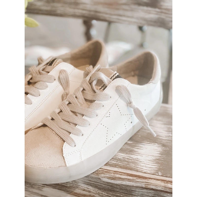 Star Print Classic Basketball SneakerMia Star SneakerInspired by classic basketball sneakers, the Mia Star Sneaker will pair with everything from shorts to dresses. With a chunky, cushion sole, this round-toe is sturdy and oh so cute.Pair these vintage sne
