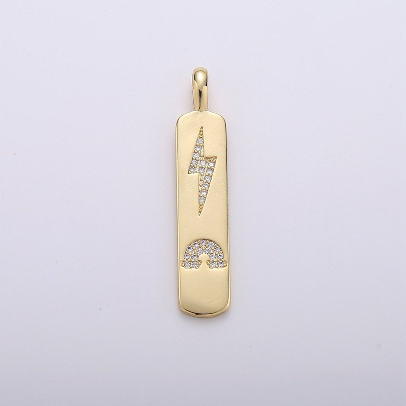 Micro Pave Bolt Charm Rectangle Tag in 14k Gold Filled Drop Pendant Long Celstial Charm for Necklace Component I-705