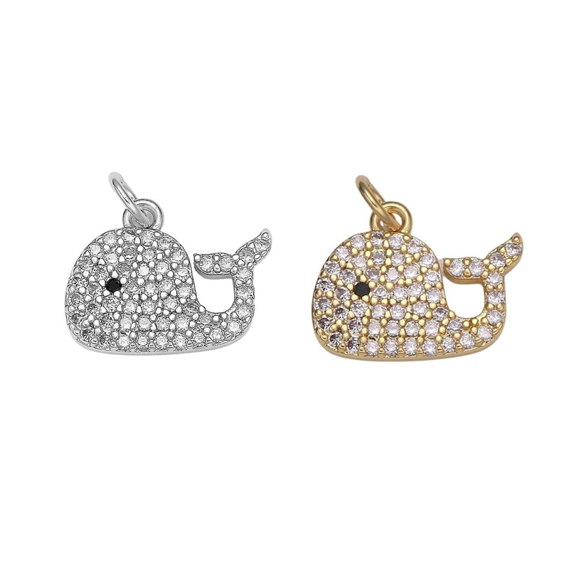 Micro Pave Gold Whale Charm, Bracelet Charm, Necklace Charm, Earring Charm, Ocean Jewelry, Fish,Dolphin ,Mermaid E-593 E-599 Gold