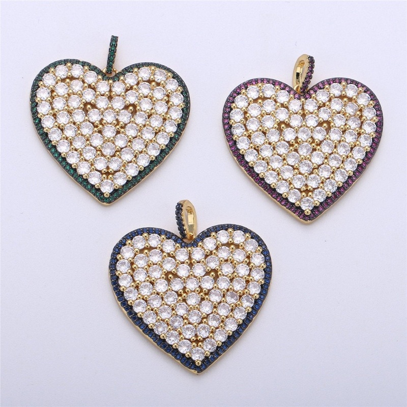 Micro Pave Heart Pendant, Heart Shaped Cubic Heart Pendant in 24k gold filled Pink Blue Green Heart Jewelry I-363~I-365 Blue