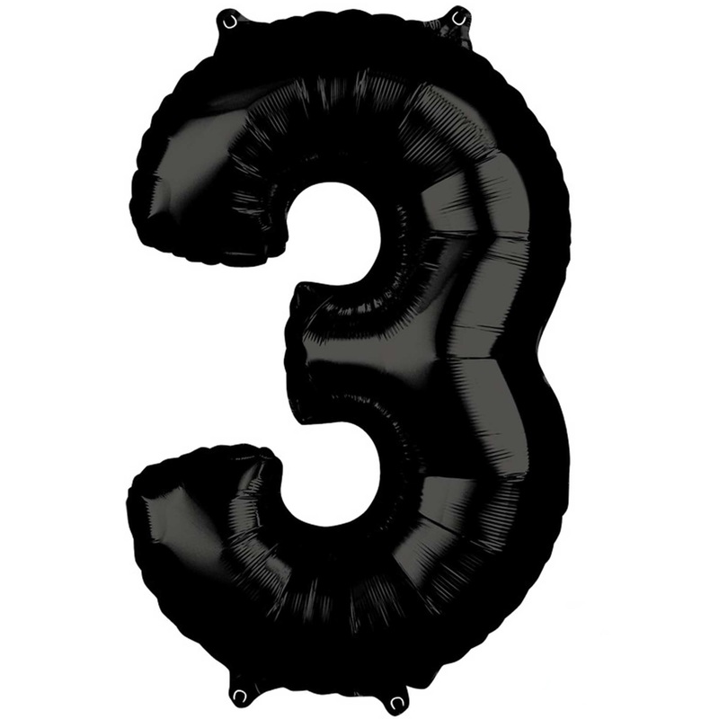 Mid-Size Shape Black Numeral 3 Balloon