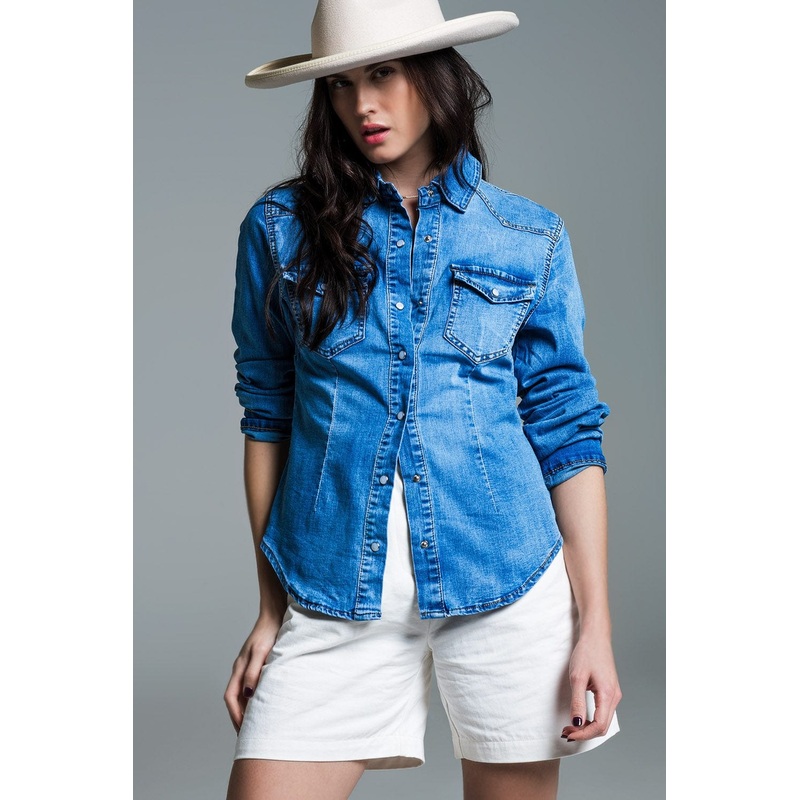 Timeless and effortlessly stylish, this mid-wash denim shirt is a must-have piece for any wardrobe. Designed with a flattering bodycon fit, it hugs your curves to create a sleek and structured silhouette while offering the perfect balance of rugged appeal and modern sophistication. The mid-wash tone adds depth and versatility, making it an easy-to-style staple for any season.