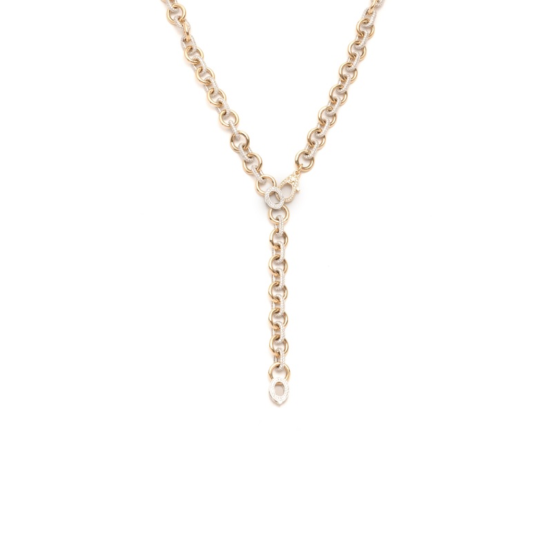 DescriptionHandcrafted in 18 karat yellow gold, this Midsized Diamond Extension Necklace is a catalyst to tell your story and to connect with the strength that resides in each of us in this extraordinary world. The gold and pav-diamond encrusted links enci