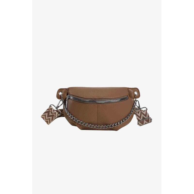 Step into the world of sustainable fashion with our Milla Vegan Leather Sling Bag, accented with chic chain detail and a removable, adjustable woven strap for ultimate versatility.Crafted from premium vegan leather, this bag proves that eco-friendly style