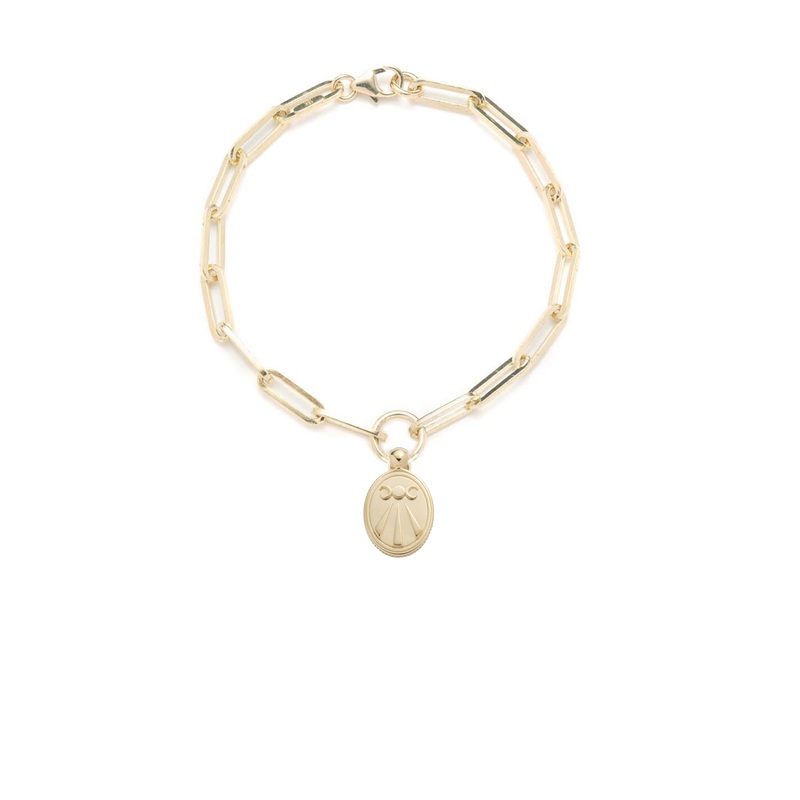 DescriptionHandcrafted in 18-karat Yellow Gold, this Classic Fob Clip Chain bracelet symbolizes Wholeness. Three converging rays of light, like paths, leading to the ascent to higher thinking and a higher state of being. The three pillars of life Mind, Bod