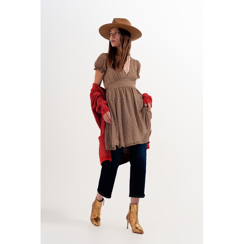 Mini Dress In Cream Check