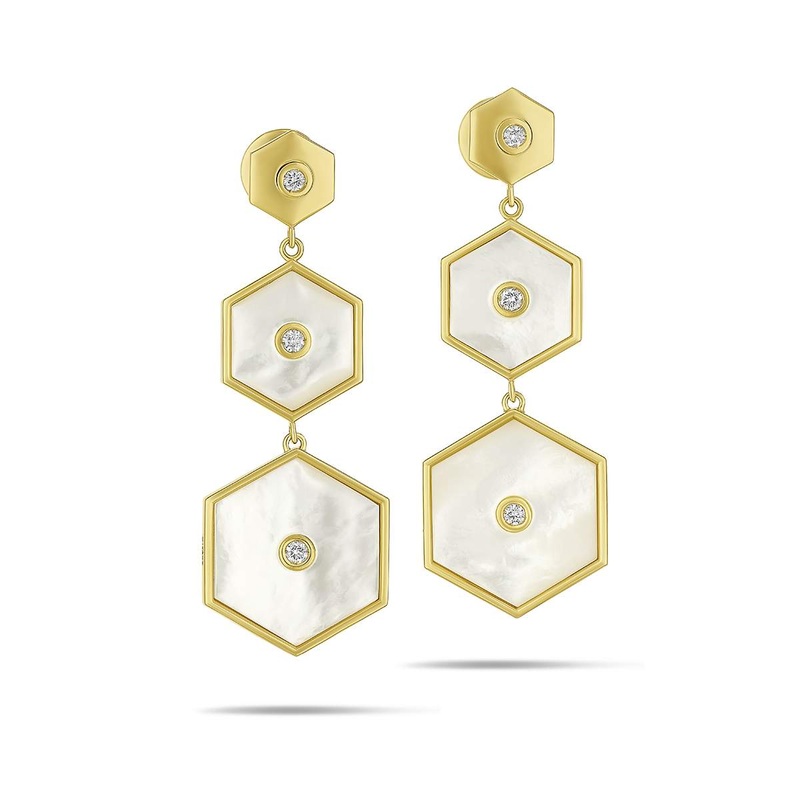 MISENO EARRINGS CRAFTED IN 18 KARAT YELLOW GOLD WITH MOTHER OF PEARL AND 0.35 CARATS OF WHITE DIAMONDS