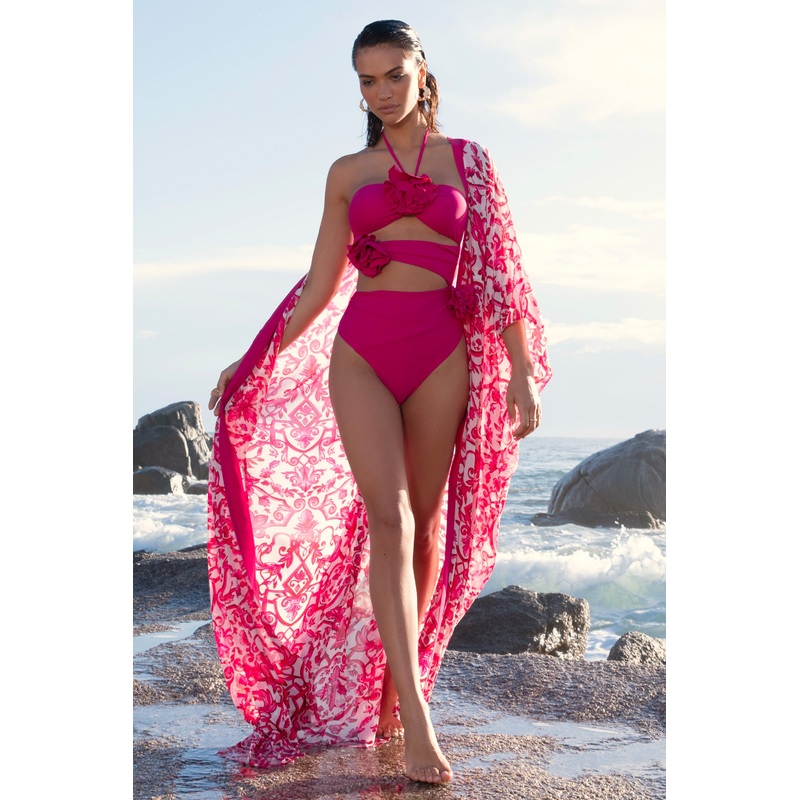 Elevate your poolside wardrobe with a swim staple like Monaco. Crafted in a vibrant dark pink, this halter-neck one-piece offers a playful feminine charm through multiple floral corsages. Complete with contemporary cut-outs throughout, this swimsuit was de