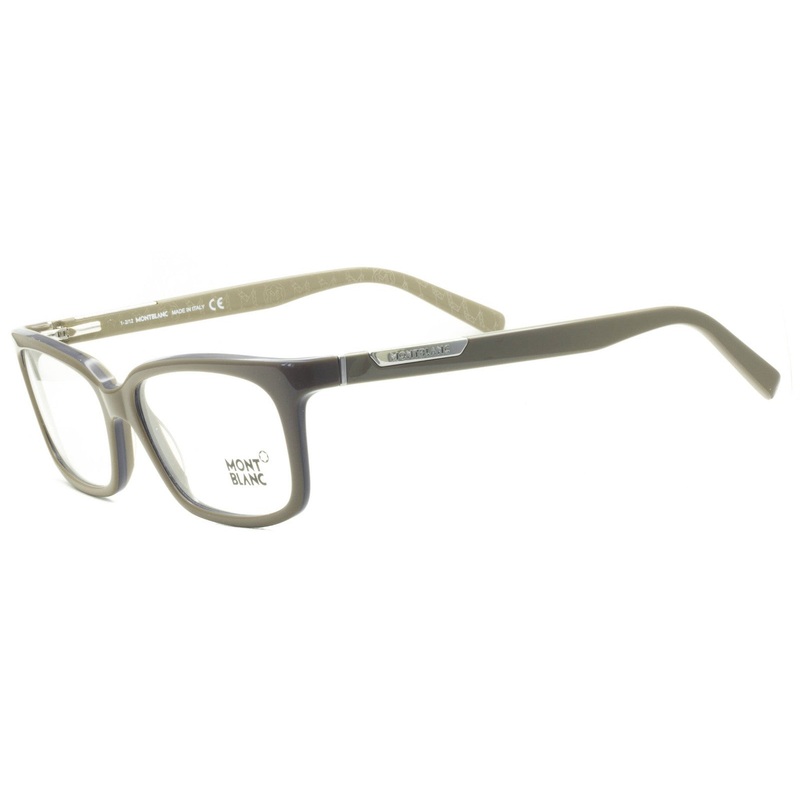MONT BLANC Full Rim Frames - 100% Authentic - MB 429 059 Gloss khaki brown acetate frames with blue stripe around Gloss khaki brown acetate arms with MB logos on polished ruthenium metal hinges Precision spring hinges for a comfort fit Never been worn Lens