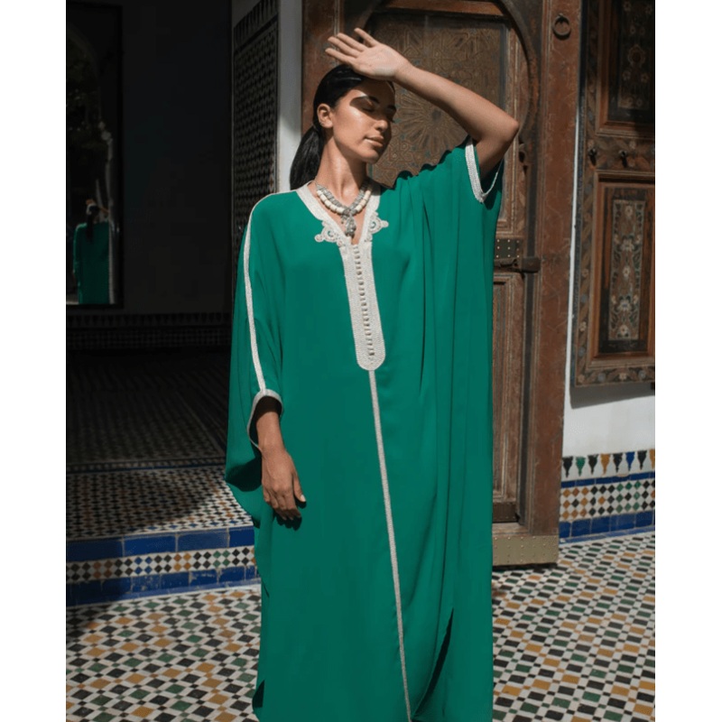 Moroccan Dress – Oversized Crepe Kaftan in Green