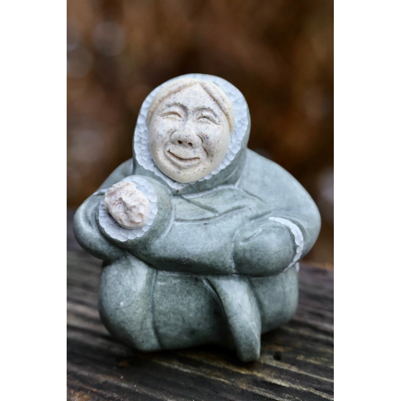 Soapstone Carving with Antler faceInitialed by Artist~ Handcrafted in AlaskaSize – 2 1/2 length, 3 1/2 width, 3 1/4 height