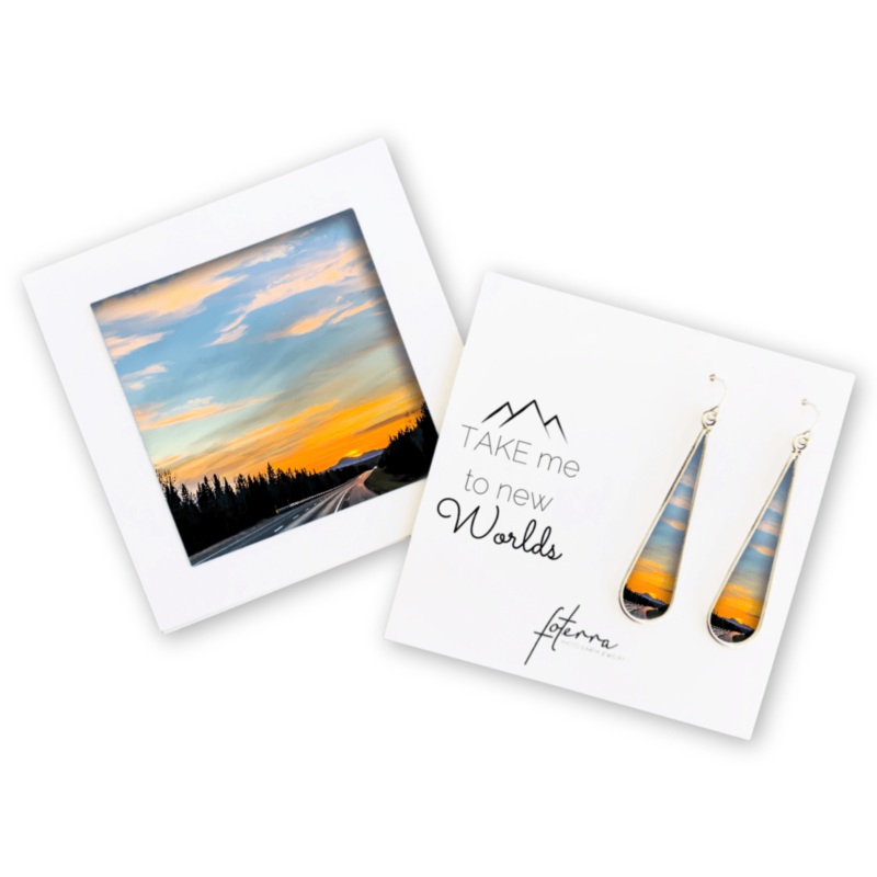 Mt. Katahdin Earrings:Whether you're imagining a peaceful stroll through a winter wonderland or simply taking in the beauty of a snow-capped mountain, these earrings aresure to remind you of nature's serenity. The soft light illuminating Mt. Katahdin creat