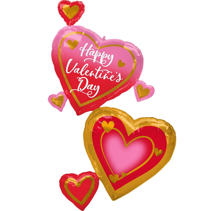 Multi-Balloon Happy Valentines Day Pink Gold and Red 1.5m Foil Balloon