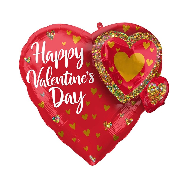 Item Includes:Balloon.Features:Heart-shaped foil balloon with attached heart garland accent.'Happy Valentine's Day' printed message.Self-sealing.Sizing:55cm x 53cm / 21.6in x 21in.Material:100% Foil.Please note: Balloons do not come inflated. Helium not in