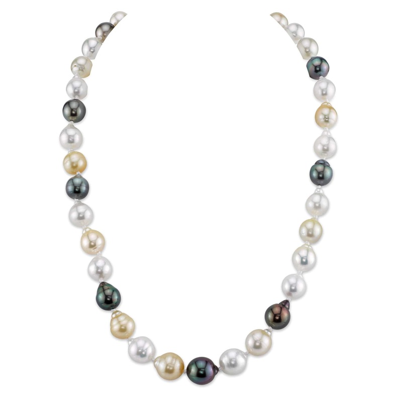 Multi-Color White, Golden South Sea & Tahitian Baroque Pearl Necklace, 8.0-10.0mm