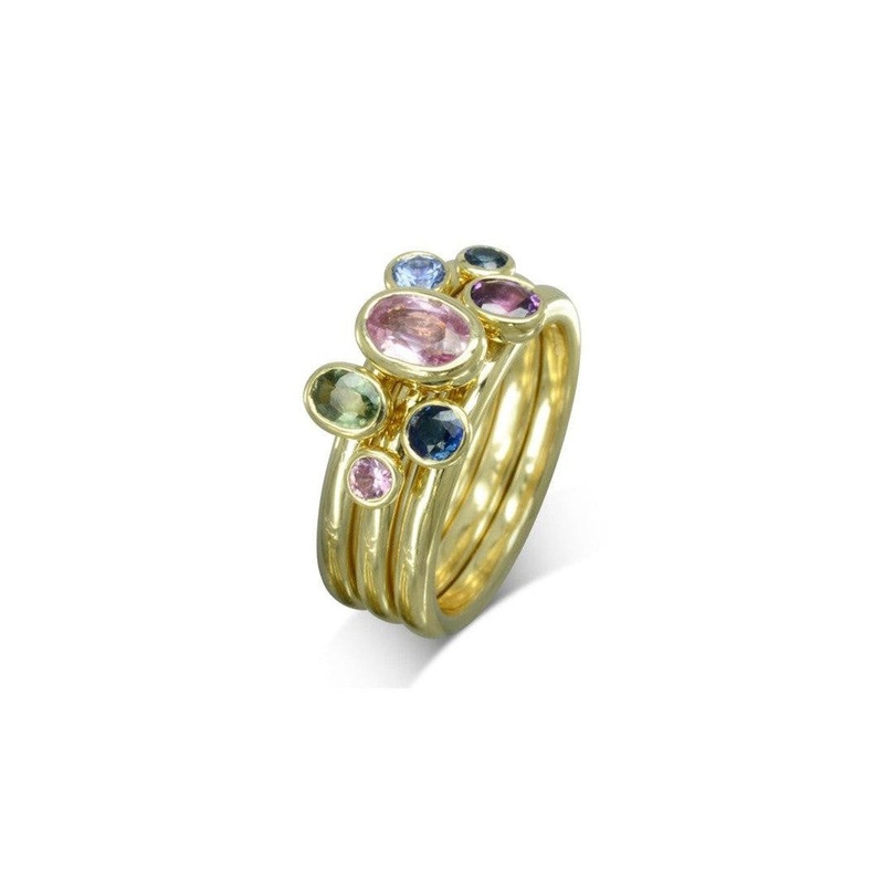 Multi-Coloured Oval Sapphire Stacking Ring Set