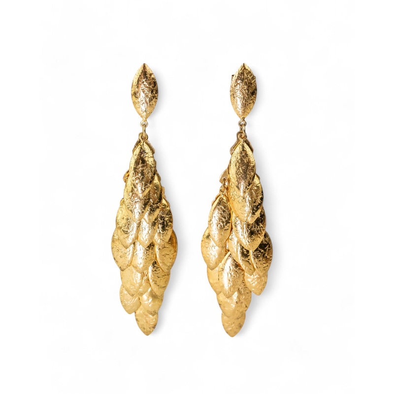Longer Length Available: A longer version of these Multi Leaf Long Vermeil Gold Dangly Earrings, measuring approximately 75mm in length, is also available.
