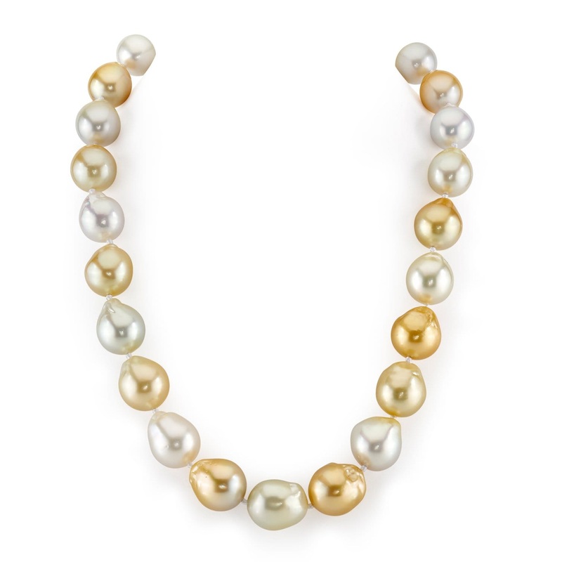 This stunning piece of jewelry features a beautiful array of White and Golden South Sea baroque pearls. Each pearl measures between 13.0 and 15.0mm, making this necklace not just an accessory, but a true statement piece. You'll appreciate the luster and un