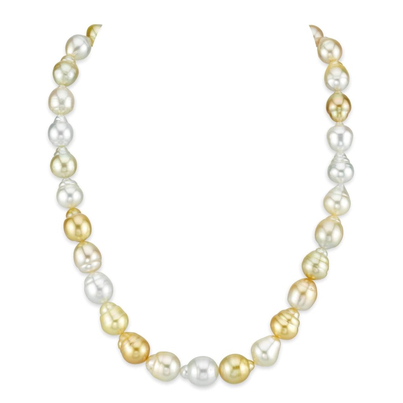 This stunning necklace showcases a collection of exquisite South Sea baroque pearls, ranging from 9.0 to 11.0mm in size. Each pearl's unique shape and luster make this piece a true statement of elegance. You'll appreciate the blend of White Australian and