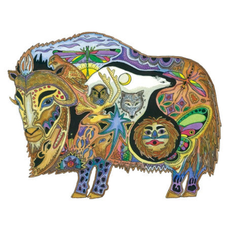 Traits of the Musk Ox are endurance, strength, determination, and service. Look inside and find the Caribou, Hawk , Wolf , and Mosquito. They live along side the Musk Ox and share territory. Don't forget to look for the hiding Ladybug, she will bring you h