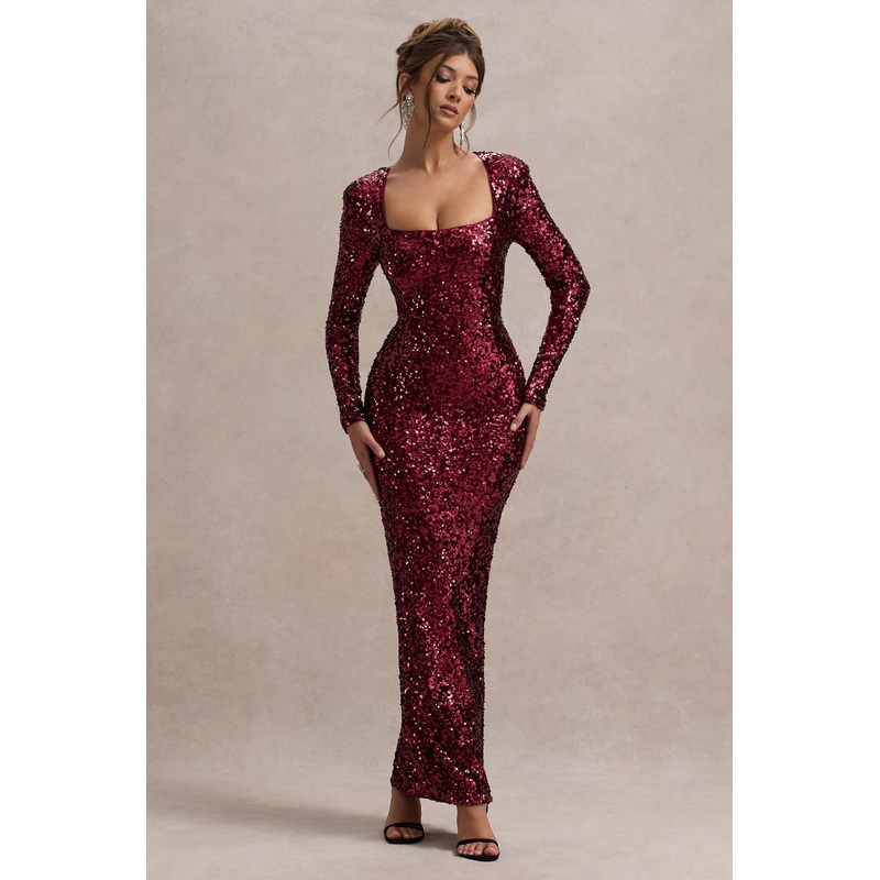 Embellished with glistening sequins that illuminate the dancefloor, get party-ready with My Dream. Boasting a sculpting square neckline, subtle shoulder padding and long sleeves, this port maxi is the epitome of elegance.Features - Premium sequin- Square n