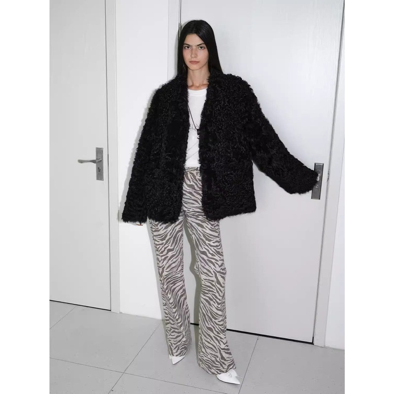 Italian Tuscan curly fur furry V-neck silhouette jacket is chic and warm at the same time.Selected original ecological Italian Tuscany sheepskin, natural curly hair attributes rich and full, clean fur combined with custom color, classic and wearable. Cropp