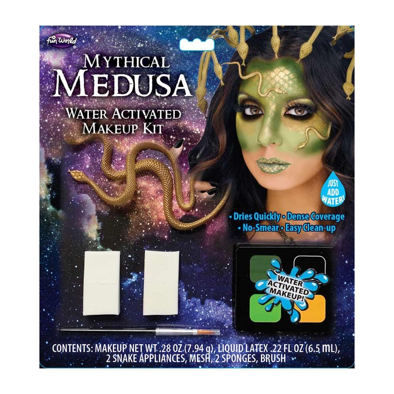 Item Includes:Makeup palette with four colours, 7.94g / .28 oz of makeupMakeup net2 x snake decorationsLiquid latex, 6.51ml / .22 fl oz of latex2 x makeup sponges1 x makeup brushPlease note: Not for use on eyes, sensitive or broken skin. For hygienic reaso