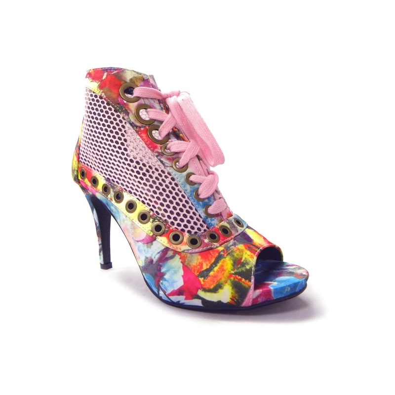 N.Y.L.A. Shoes Sangrace Women’s Lace Front Heels in Pink Tie Dye or Black Geo Print
